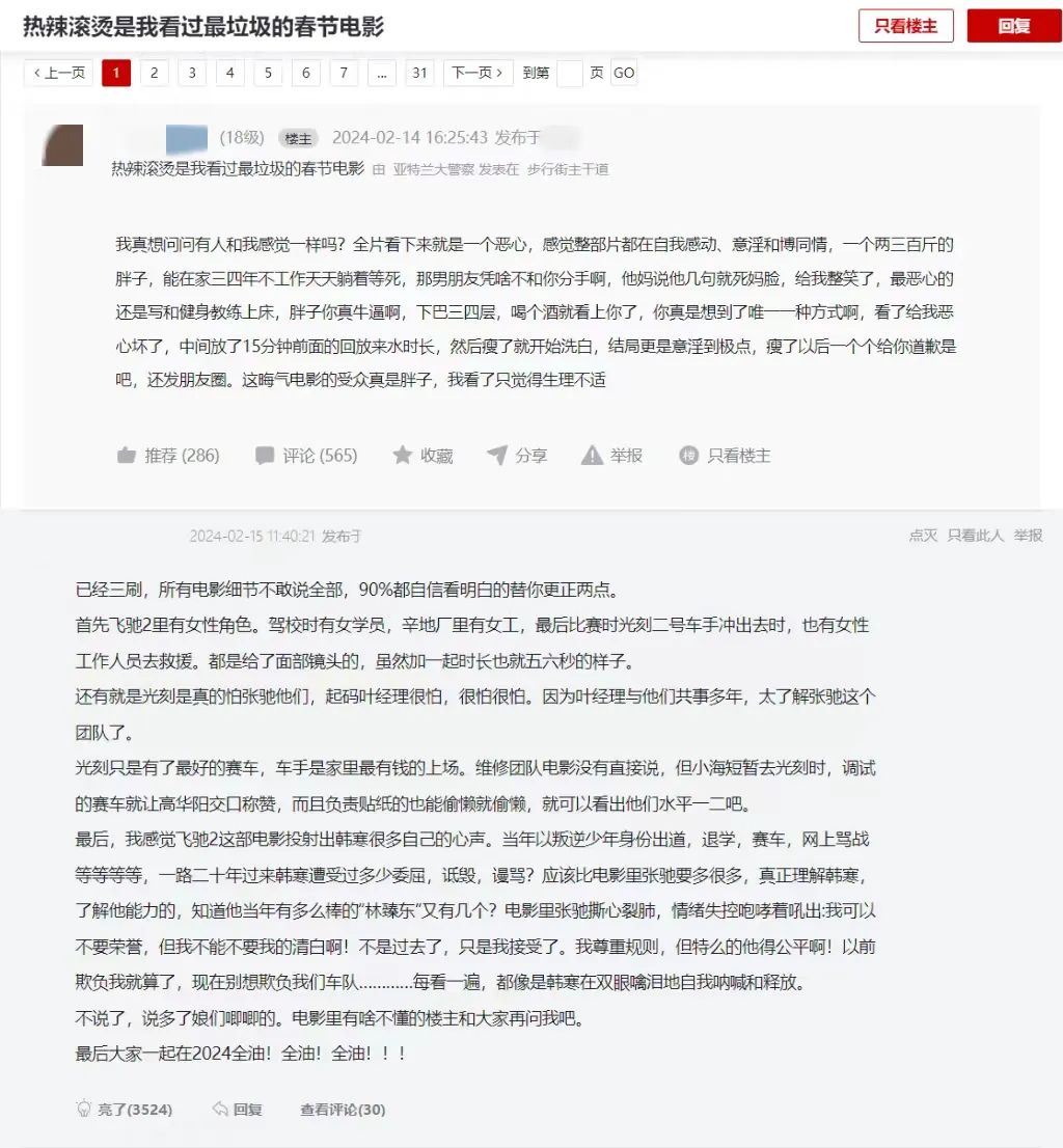 上图为《热辣滚烫》讨论帖;下图为《飞驰人生2》讨论帖