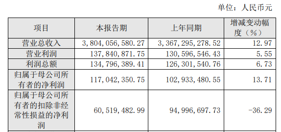 根据业绩快报,2023年广大特材实现营业总收入38.04亿元,同比增长12.97%;对应归母净利润1.17亿元,同比增长13.71%。