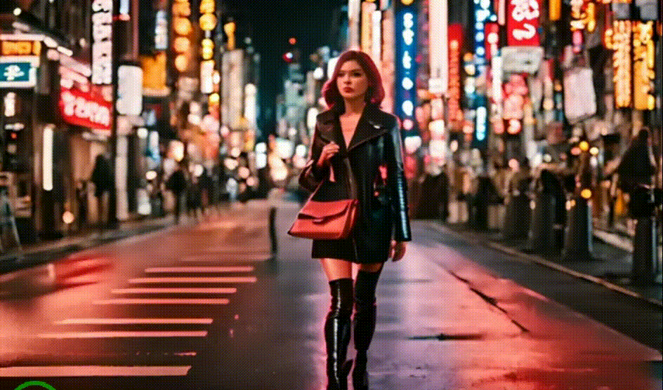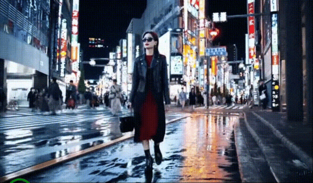 同样是女人在东京街头漫步的指令,Runway生成的视频暂停看还都像那么回事,连起来就只能用“千变万化”形容,女人的形象并不能随着时间的推移保持稳定。要知道Sora的演示视频中还有机位的变化,从远景到脸部特写,女人的形态始终如一。Runway生成的视频更像是很多张图片的动态融合。