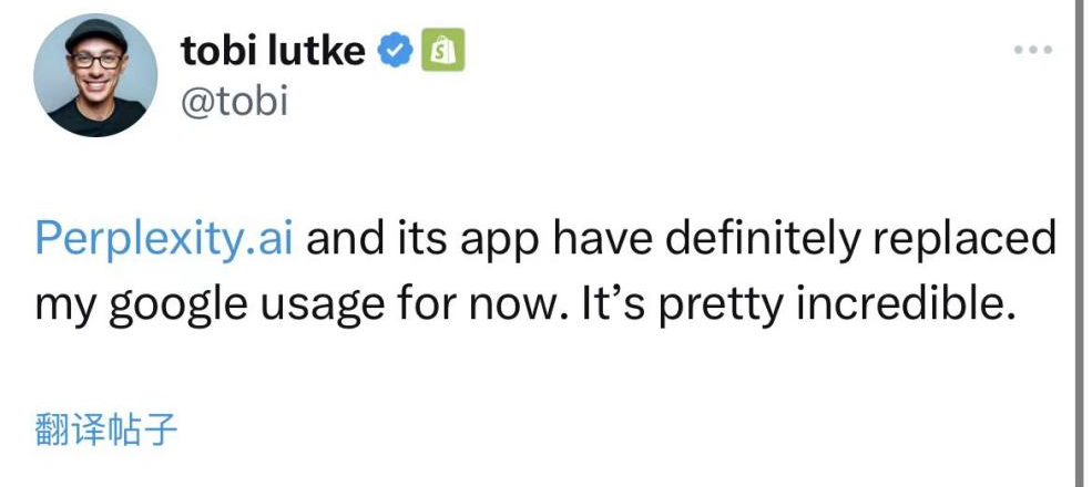 Shopify CEO 对 Perplexity.ai 的评价|图片来源:X