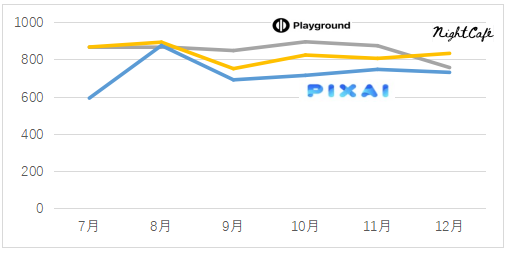 Playground、Nightcafe Studio、PixAI,7-12 月流量/万
