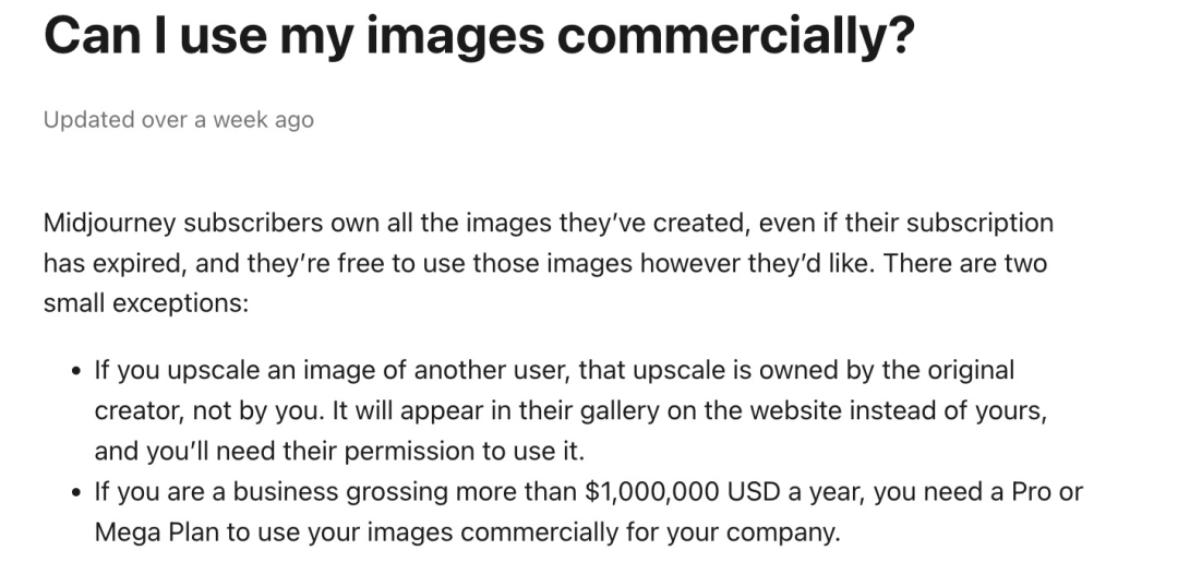 Midjourney 的版权条款,注:Midjourney 现已取消免费版,在之前用户免费生成的图片不可商用
