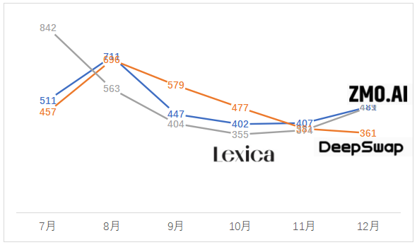 ZMO.ai、DeepSwap、Lexica 7-12 月网站流量数据|图片来源:Similarweb