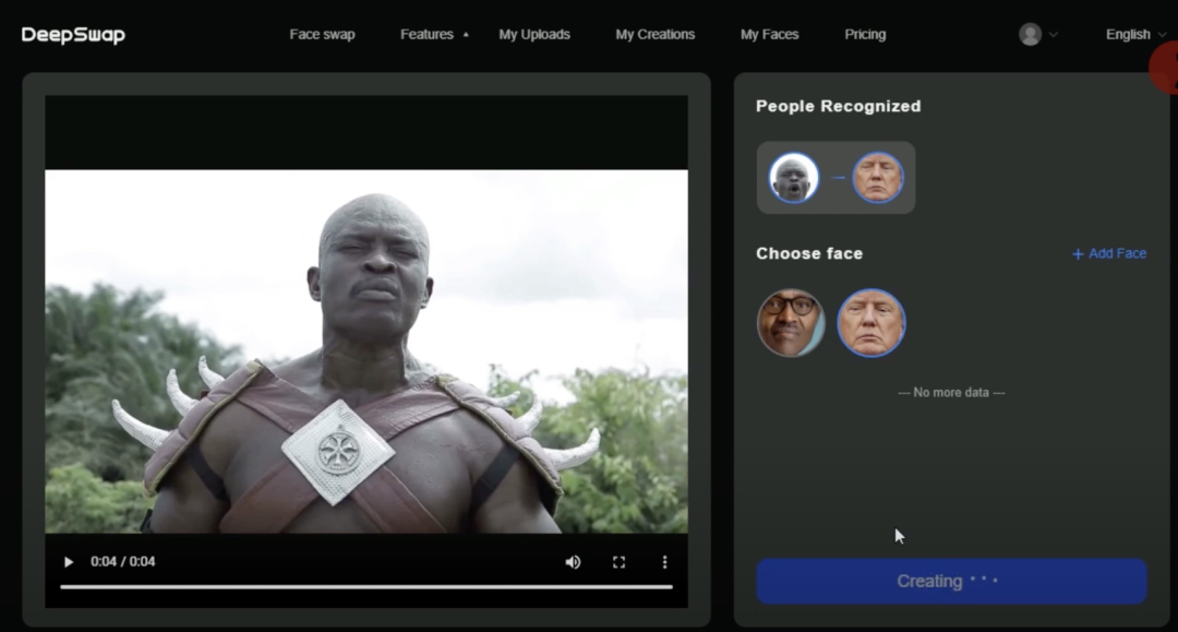DeepSwap 换脸功能界面|图片来源:DeepSwap