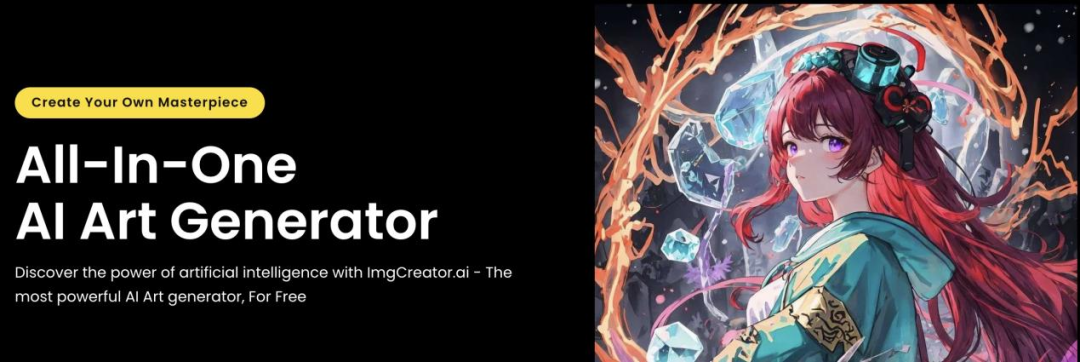 AI Art Generator 页面宣传(上),AI生图功能页面(下)
