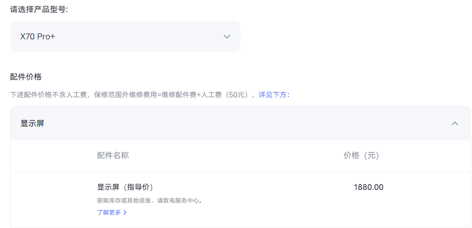 第二个问题就是维修成本,发布于2021年采用三星曲屏的vivo X70 Pro+至今维修费用仍高达1880元。虽然随着各厂商陆续采用国产屏幕供应商使得成本有所下降,但是由于没有边框保护,曲面屏破损的几率普遍会提高不少。