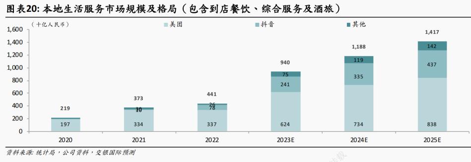 2023年初,抖音给自己的生活服务GMV目标设为1500亿元。而有券商预测,2023年抖音本地生活服务规模将达到2500亿元。
