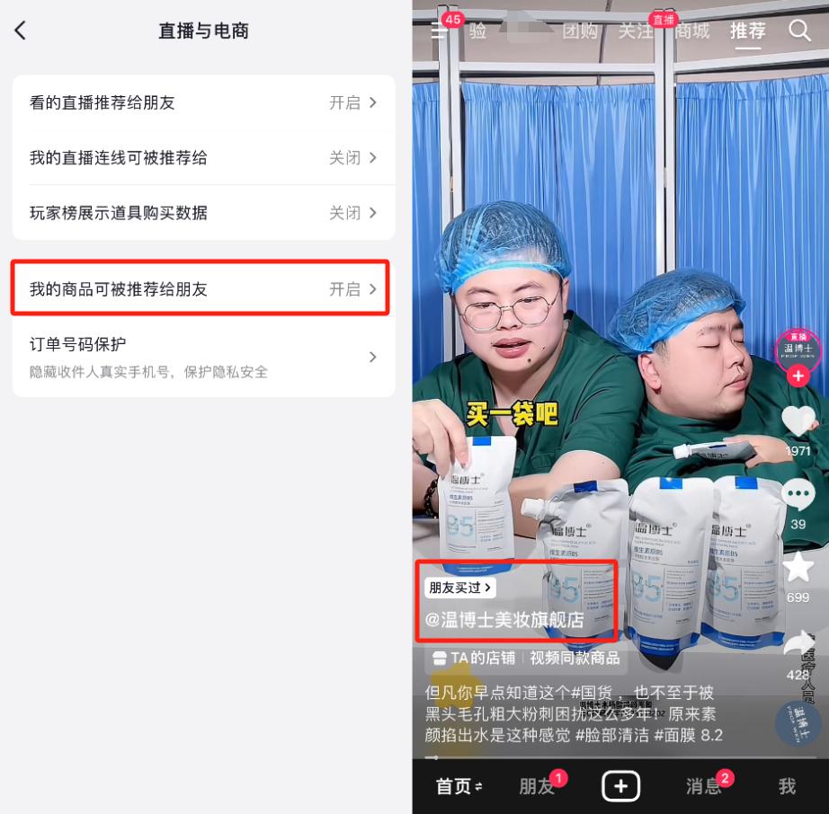 对抖音商城而言,据报道,抖音平台的日活用户已达8亿,是一个天然的流量海洋。近日,商业数据派还发现,抖音新出的“朋友买过”的推送机制,将内容场的流量引进货架商品卡,其链接方式颇像拼小圈,会在信息流中推送、标注“朋友买过”的商品短视频,引发不少网友直呼社死。