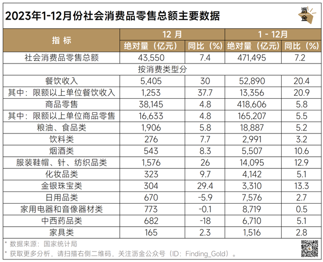 2023年社会消费品零售总额主要数据