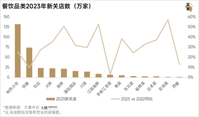 餐饮品类2023年新关店数(万家)