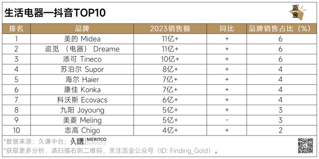 生活电器线上平台年度抖音TOP10品牌
