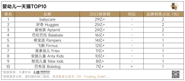 婴幼儿线上平台年度天猫TOP10品牌