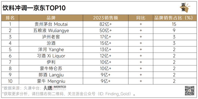 天猫TOP10榜单中,乳品品牌占据半壁江山。而京东、抖音中上榜品牌超半数是酒品牌,白酒是主导力量。