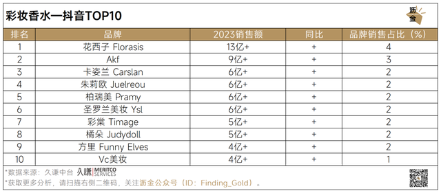 彩妆香水线上平台年度抖音TOP10品牌