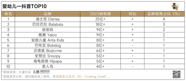 婴幼儿线上平台抖音TOP10品牌