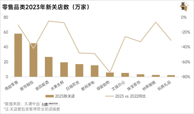 零售品类2023年新关店数(万家)