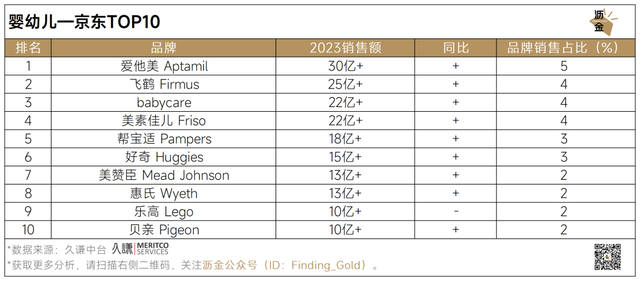 婴幼儿线上平台年度京东TOP10品牌
