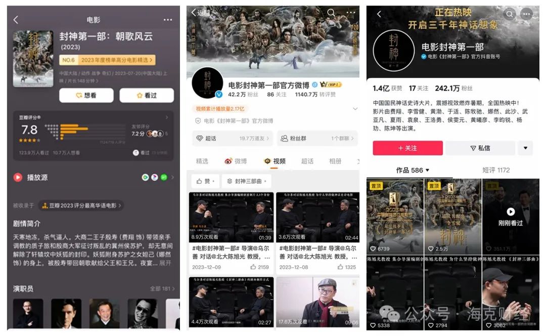 在口碑发酵前,《封神》采取的还是放花絮、谈电影创作等传统宣传方式,上映首日票房仅4900万元,这使初期许多媒体预估大制作的《封神》难以收回成本。上映1周后,片方才逐渐找到新的宣发方向,包括质子团、费翔的口音等。