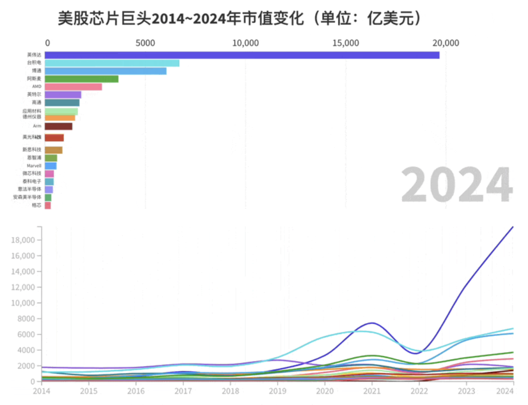 和其它半导体企业相比,英伟达是“遥遥领先”的,起码在市值上如此。