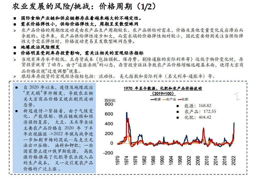 二是,地缘政治风险频繁爆发。自2020年以来,疫情之后地缘政治事件对能源、农产品和化肥价格的剧烈波动。特别是这次,化肥价格已经上涨到自1970年代危机以来的最高水平。
