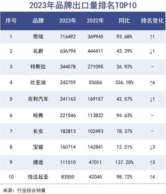 2023年,奇瑞集团旗下的奇瑞汽车海外销量劲增94%,单个品牌就卖出了71万辆,反超名爵位居单品牌第一名;捷途销量暴增137%,也强势晋级海外TOP10。