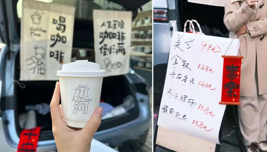 在四川某小镇,一位小红书博主分享自己摆“地摊咖啡”,第一天杯子就不够用。这个主要靠汽车后备箱、一张桌子、一台咖啡机支棱起来的小摊,成了镇上必来打卡地。博主表示,“当时就是想着填补年轻人的咖啡空缺,果然,大家很缺”。