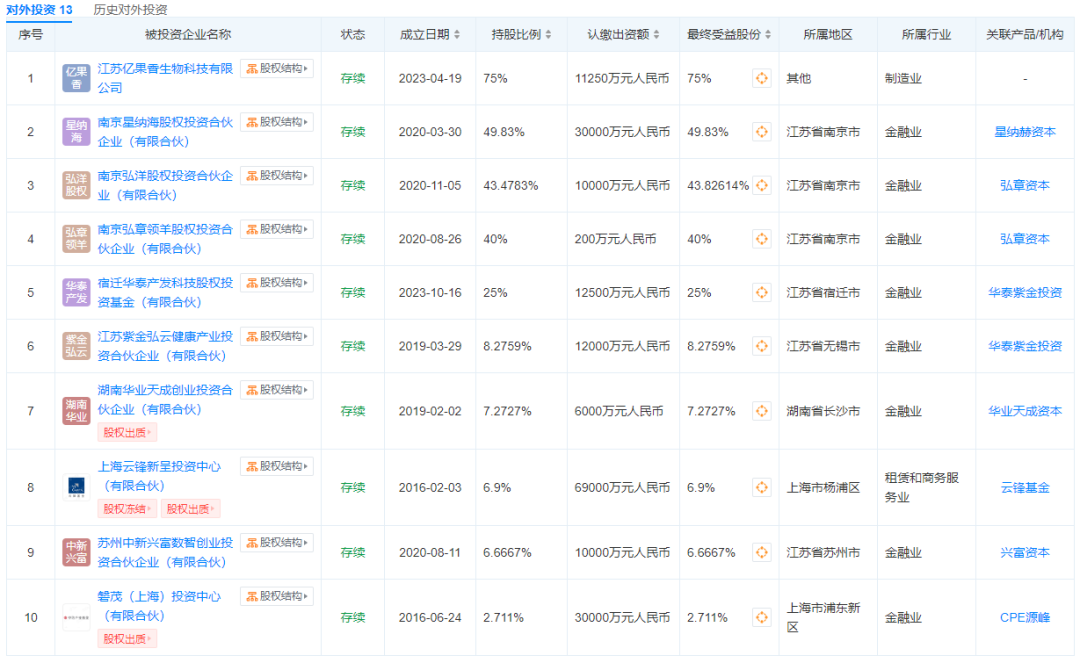 苏酒集团江苏财富管理有限公司对外投资情况(图 / 天眼查)