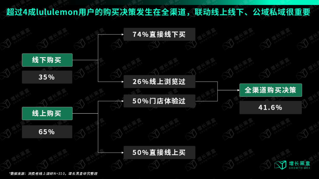 内容上的“组合拳”能够让品牌保留个性的同时,具备服务上亿人的能力。从lululemon的用户行为中,也可以观察到鞋服零售一个普遍的趋势:今天消费者购买决策的链路更依赖全渠道,而不是通过单一的触点完成。所以,全域联动的内容体系才是零售场景的最优解。