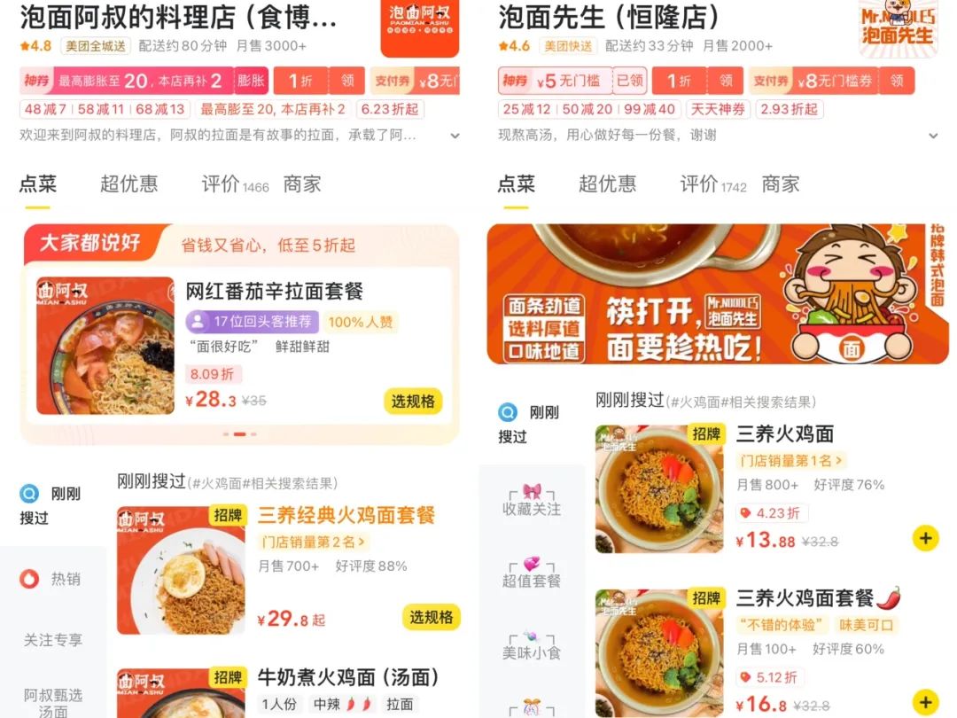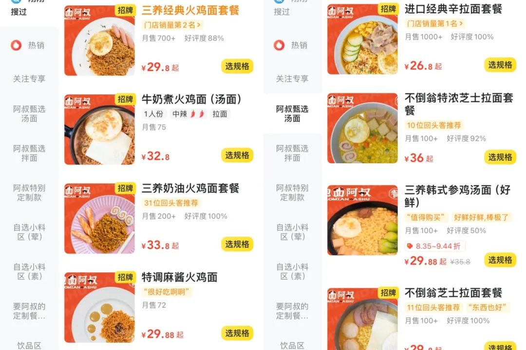 甚至红烧肉牛面、辛拉面等经典单品,更是有一批“面粉”跟随,这意味着这个品类天然会有流量和复购存在。