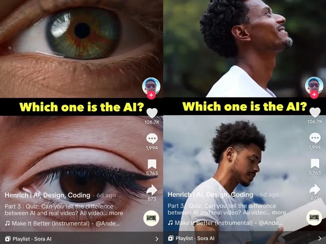 A16z合伙人看了这些视频称,如果它们出现在信息流里中,绝对分不出真假。TikTok已经有不少博主发实拍和AI拍视频对比,就我个人体验来看,确实无法完全区分出真假,十则对比视频总会猜错两三个。