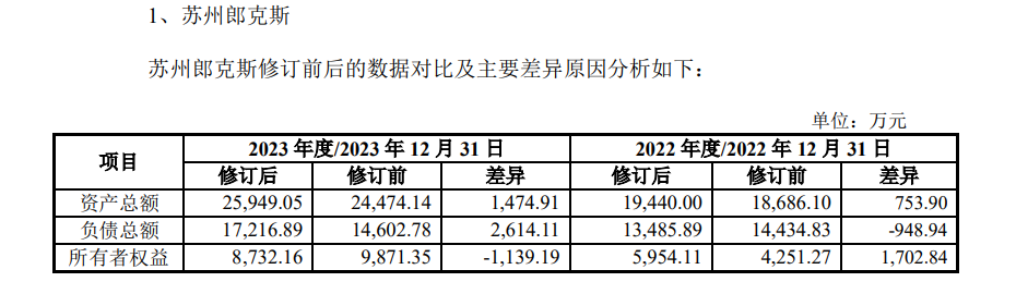 此前,公司曾披露了苏州郎克斯和江苏朗迅未经审计的主要财务数据。但随着尽调工作的开展,标的公司对前述财务数据进行了复核并修订。