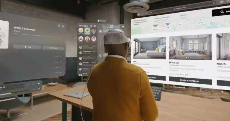 基于这两大方面的极致创新和优化,Vision Pro实现的一个更为重大的突破点是,库克多次提及的“空间计算”概念真正具像化了——Vision Pro的VST(Video See-Through,即视频透视,通过摄像头将外界的景象呈现在屏幕上的显示方式)已基本达到一种可用的程度,能让用户在体验虚拟世界的同时,实时观察到现实世界,且没有任何可感知的延时。