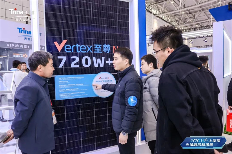 天合光能,致力于将高功率、大尺寸组件产品应用到分布式领域:天合光能首创的210R矩形硅片结合N型TOPCon技术组件,打出了“700W+上屋顶、光储融合新场景”的组件推广策略,倍受工商业市场认可。