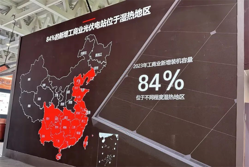 南移的趋势实际上早已影响了分布式龙头厂商们的市场判断。29日,隆基绿能分布式光伏相关人士在本届济南国际太阳能利用大会的分享中表示,其团队通过市场调研发现了一个趋势,“2023年内84%的新增工商业光伏电站位于湿热地区”。