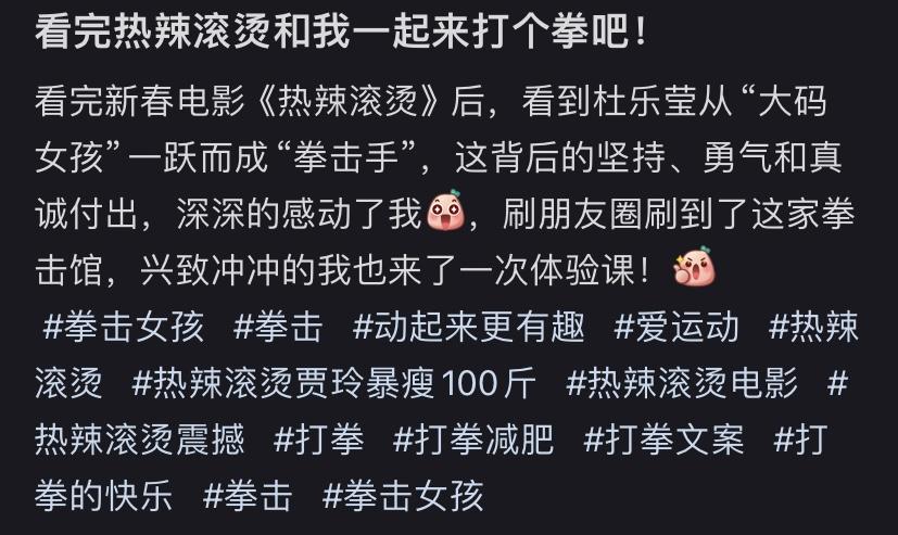 有拳馆直接推出拳击课套餐。也有部分商家给了更加“YOLO”的选择,团购套餐贴上“热辣滚烫”的tag,无论泰拳、私教还是瑜伽,凭观影票根就能换取一张课程优惠券。