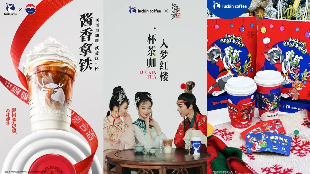靠联名IP提升产品附加值也是瑞幸打开市场的一大方式。先有酱香拿铁与茅台联名、后又推出与猫和老鼠联名的马斯卡彭生酪拿铁,再到现在与《红楼梦》舞剧的联名......社交平台上的打卡热潮也在助推更高的产品热度。