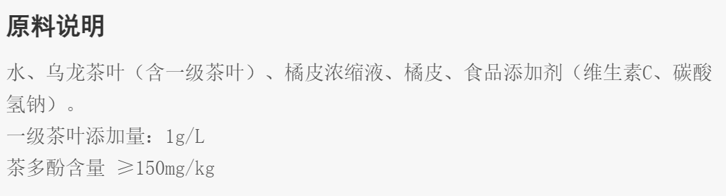 三得利橘皮乌龙(无糖)原料说明,图源:三得利中国官网