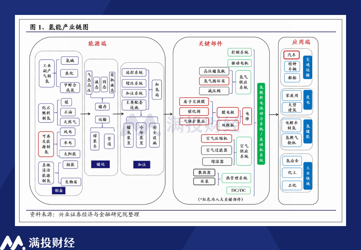 从政策上来看,《氢能产业发展中长期规划(2021—2035年)》,明确了氢的能源属性,是未来国家能源体系的组成部分,充分发挥氢能清洁低碳特点,推动交通、工业等用能终端和高耗能、高排放行业绿色低碳转型。同时,明确氢能是战略性新兴产业的重点方向,是构建绿色低碳产业体系、打造产业转型升级的新增长点。