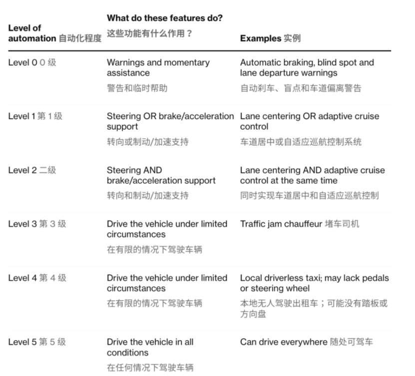 根据《SAE驾驶自动化分级》,L0—L2属于“驾驶辅助”——车还是你在开,但系统可以给你打打辅助;L3—L4,属于“部分自动驾驶”——车可以自己开,但关键时刻需要你上手接管;L5,属于“完全自动驾驶”——连方向盘、油门踏板、倒车灯都没有了,你可以在车上睡大觉。