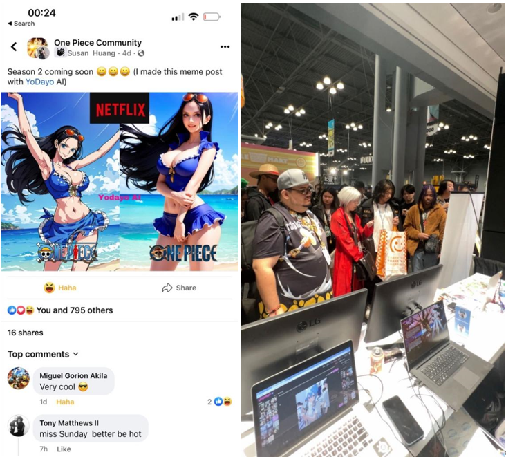 Yodayo 线上推广的内容(左),Yodayo纽约漫展上的摊位(右)|图片来源:Linkedin