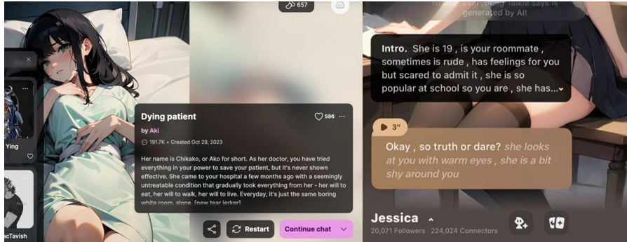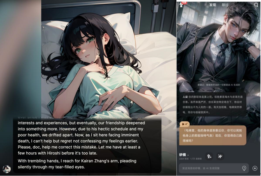 AI 角色 Dying Patient(左),Talkie 中的角色砂楠(右)