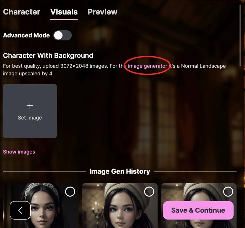 最后,作为一个以 AI 生图起家的网站,在 AI 聊天与 AI 生图之间的关联方面,貌似仅在于创建角色时,上传图片地方,给 AI 生图功能的引流按钮,聊胜于无。