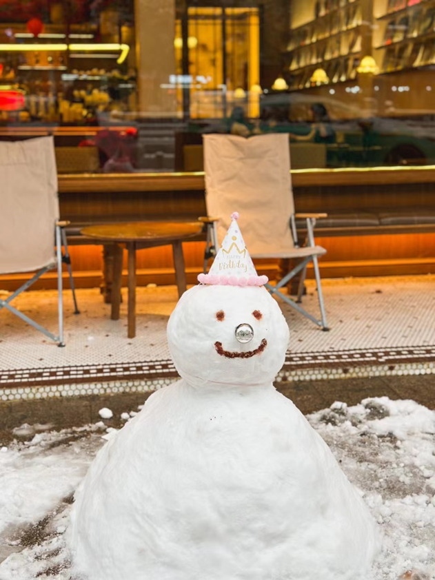 咖啡馆门前的雪人