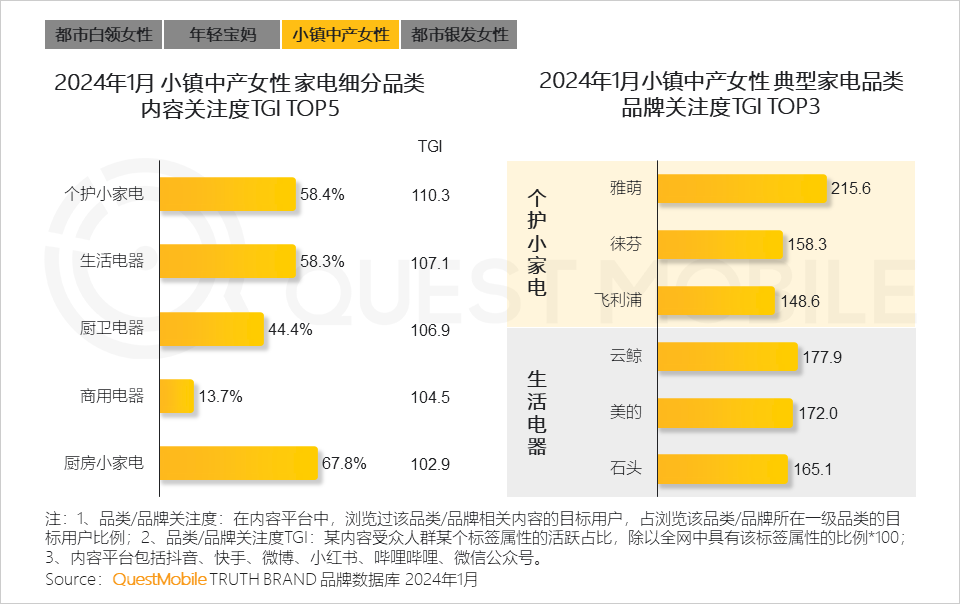 4.4 家电消费方面,小镇中产女性用户呈现智能化、个性化消费趋势,更加关注美容仪等个护小家电及扫地机器人等智能清洁用品