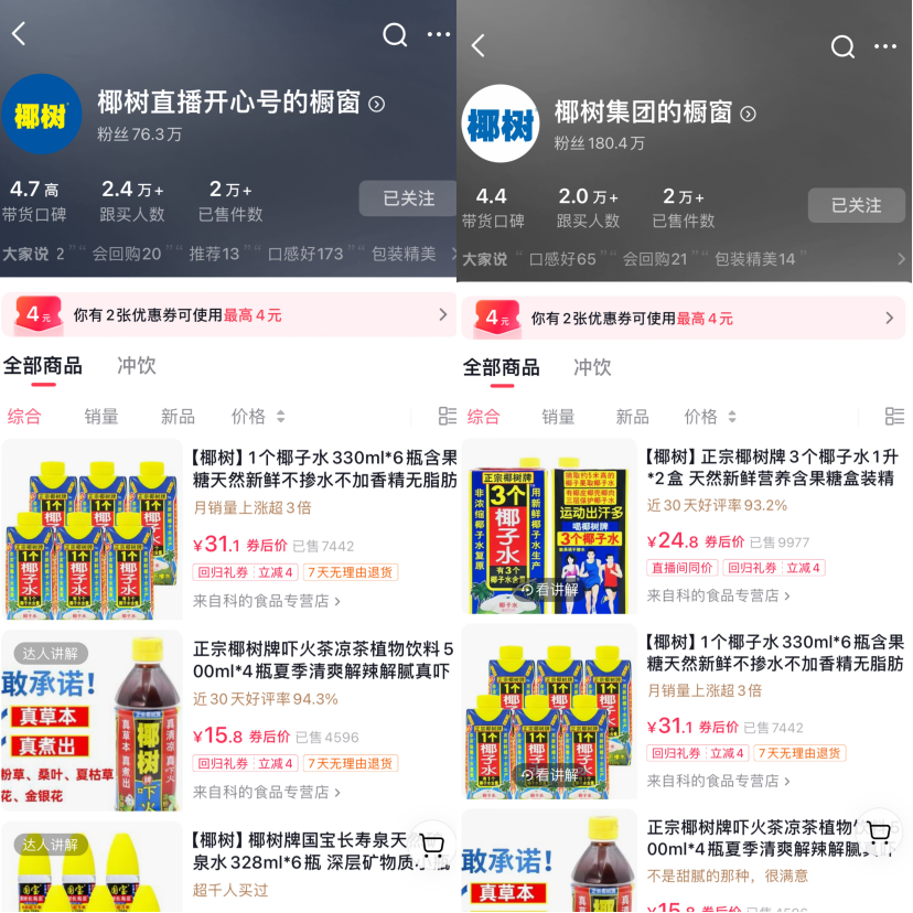 一旦椰树正儿八经布局直播带货,肯定会挤占经销商的生存空间,破坏现有的经销体系。