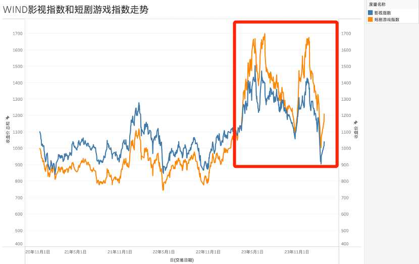 我们特意整理了wind影视和短剧游戏指数的走势情况,见下图
