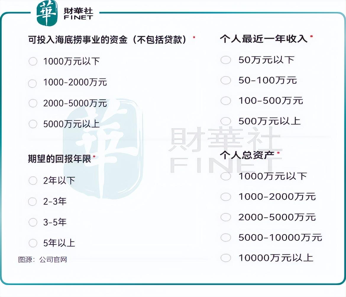 笔者在海底捞官网扫码后填写了加盟合作申请表单,其中有几个选项要求令不少人望而却步。其中,加盟商可投入海底捞事业的资金(不包括贷款)选项有1000万元以下、1000-2000万元、2000-5000万元、5000万元以上;个人最近一年收入选项有50万元以下以及其他更高的区间;个人总资产选项有1000万元以下以及其他更高的区间。