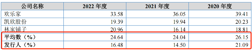 此外,报告期内,丰岛食品的毛利率分别为21.09%、14.50%和16.48%,同期,同行公司的毛利率平均值分别为26.15%、24.04%和24.64%,可见丰岛食品的毛利率远低于同行公司。