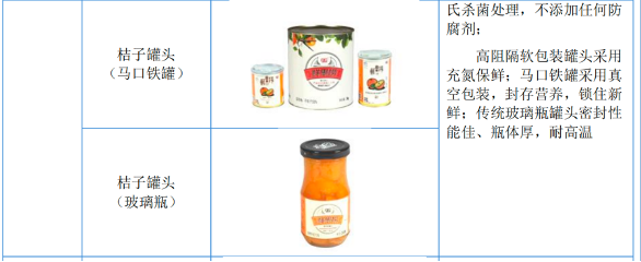 然而,目前丰岛食品的罐头主要在包装上有所区别,例如,公司的橘子罐头分为高阻隔塑料杯、马口铁罐、玻璃瓶三种包装,而在罐头内容物上并未有多大差别。