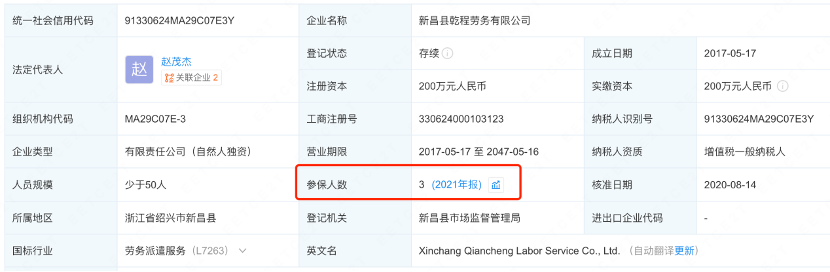 值得一提的是,企查查显示,乾程劳务的参保人员仅有3人,这样一家“小”公司是如何能够承接丰岛食品几千万元的业务,是否真实合理,还需丰岛食品的进一步解释。